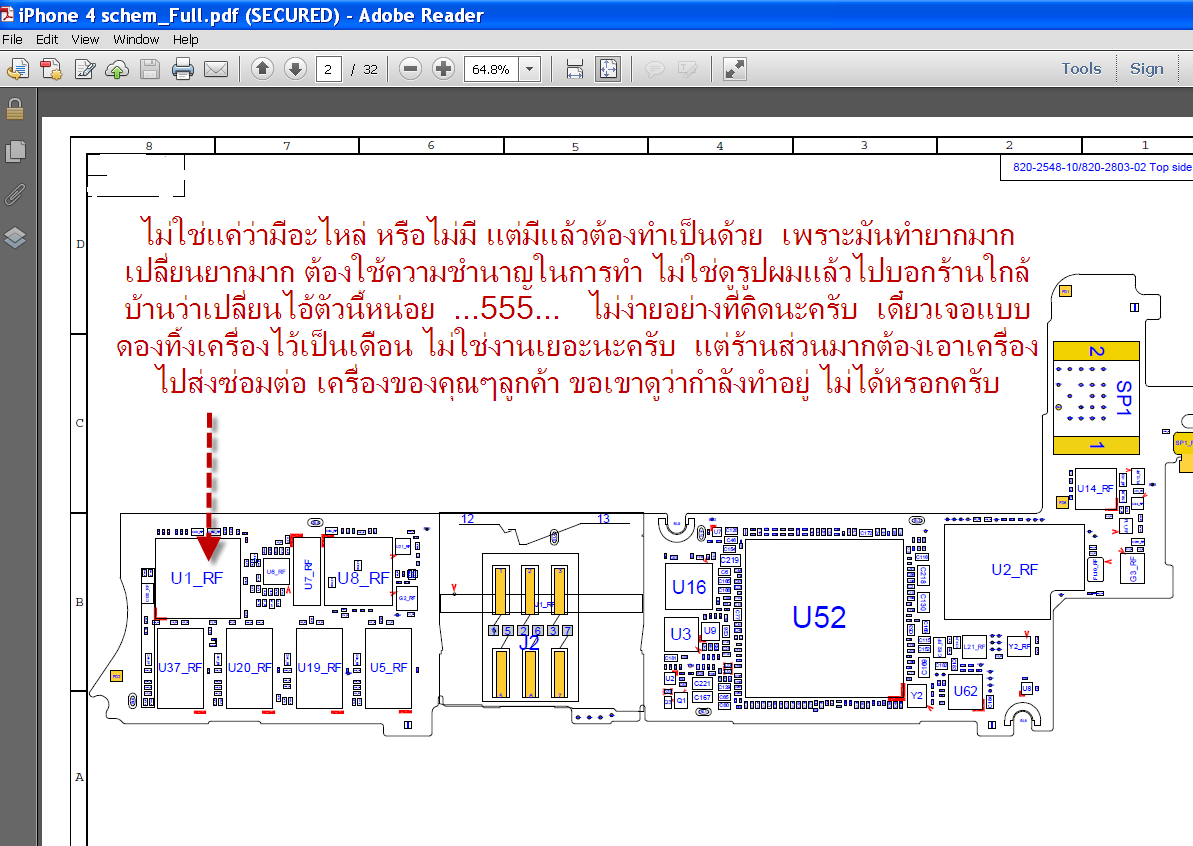 ไม่ ใช่แค่ว่า มีอะไหล่ หรือไม่มีนะครับ แต่มีอะไหล่แล้วต้องทำเป็นด้วย ต้องเปลี่ยนเป็นเป็นด้วย ที่สำคัญต้องเช็คเป็นด้วยว่าอะไหล่ตัวไหนกันแน่ที่เสีย ไม่ได้มีอยู่แค่ตัวที่เห็นในรูปนะครับ ที่มันมีโอกาสจะเสีย .......มันทำยากมาก เปลี่ยนยากมาก ต้องใช้ความชำนาญในการทำ ไม่ใช่ดูรูปผมแล้วไปบอกร้านใกล้ๆบ้านหรือร้านในห้างไหนๆ (ร้านในห้างใหญ่ๆ ไม่ได้เป็นสิ่งที่แสดงว่าเขาจะซ่อมเครื่องคุณได้หรอกนะ จะบอกให้) ไปบอกว่า เปลี่ยนไอ้ตัวนี้หน่อย...555....ไม่ง่ายอย่างที่คิดนะครับ เดี๋ยวจะไปเจอแบบ ให้ทิ้งเครื่องไว้ดองเป็นเดือน แล้วโดนอ้างว่างานเยอะ จริงๆเอาเครื่องไปส่งร้านอื่นๆ ที่เป็นร้านซ่อมทำต่ออีกที ลองขอดูเครื่องที่ทิ้งไว้ให้ทำสิครับ มันยังอยู่ในร้านไหม ร้านผมให้เซ็นต์ชื่อไว้บนบอร์ดแผงวงจรเลยนะครับ เวลารับเครื่องซ่อม ถ้าบอกยังทำอยู่มาขอดูได้ตลอด เครื่องทำอยู่ในร้านตัวเองแน่ๆ